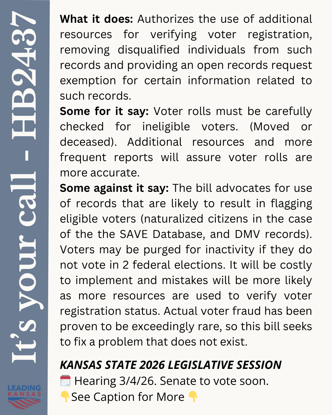 Stay informed. Get critical Kansas updates delivered straight to your inbox. Join the Movement Latest from Leading Kansas No Kings Sign Making Party!We hope you join us on 3/22 as we make signs for No KingsLeading Kansas Q&AHow do you ensure you've fully researched an issue?3.12.2026 Meeting RecapQuick Reminders and Meeting MinutesBack to the Basics - 2nd AmendmentWhat does the 2nd Amendment mean to you?HB2437 - It's Your CallWhat info sources should be used to remove people from the voter roles?